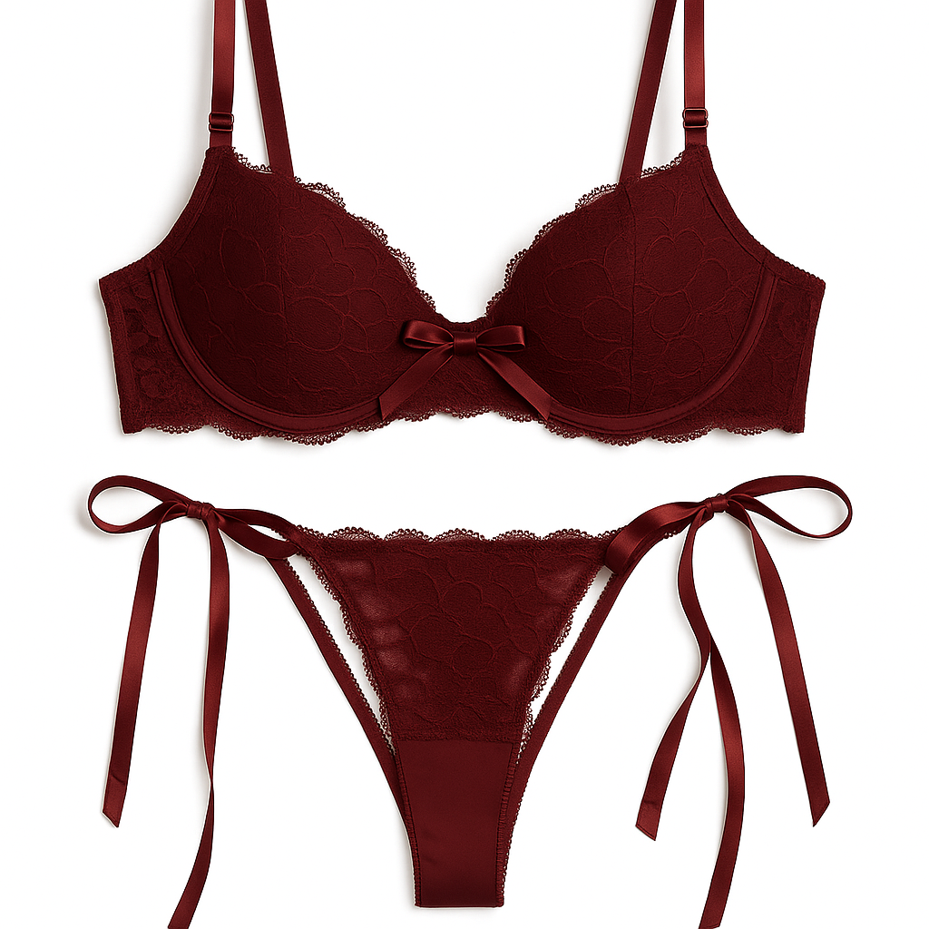 O Conjunto Bella Notte é a escolha perfeita para noites especiais. Composto por um sutiã em renda macia com detalhes em cetim brilhante e uma calcinha estilo tanga com laterais finas e laços ajustáveis, essa peça equilibra ousadia e charme na medida certa. A delicada transparência da renda floral contrasta com o brilho sutil do cetim, criando uma peça sedutora e elegante. Disponível nas cores vinho profundo, azul royal e nude rosé.